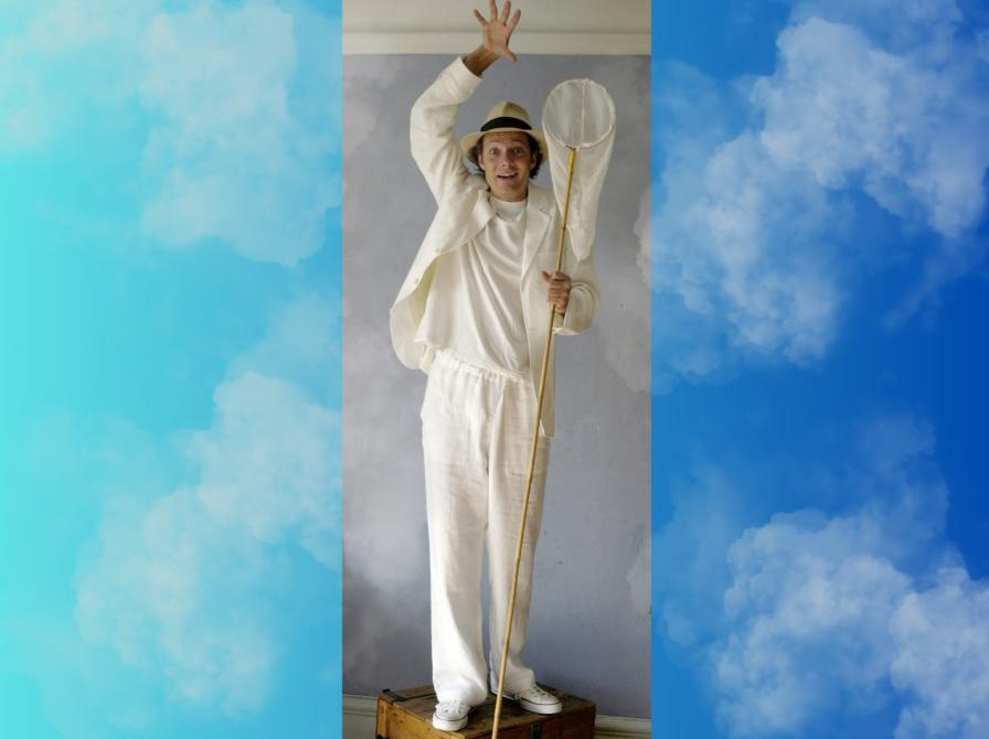 At fange historier er ikke så let, skønt manden i hvidt springer rundt med sit net - ser op, ser ned og smiler så lettet – for HAPS – har han fanget historien i nettet. Hvad er det for én, som ligger og spræller?