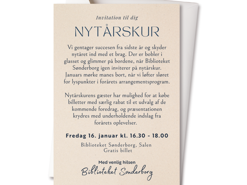 Vi gentager succesen fra tidligere og skyder nytåret ind med et brag. Der er bobler i glasset og glimmer på bordene, når Biblioteket Sønderborg igen inviterer på nytårskur.