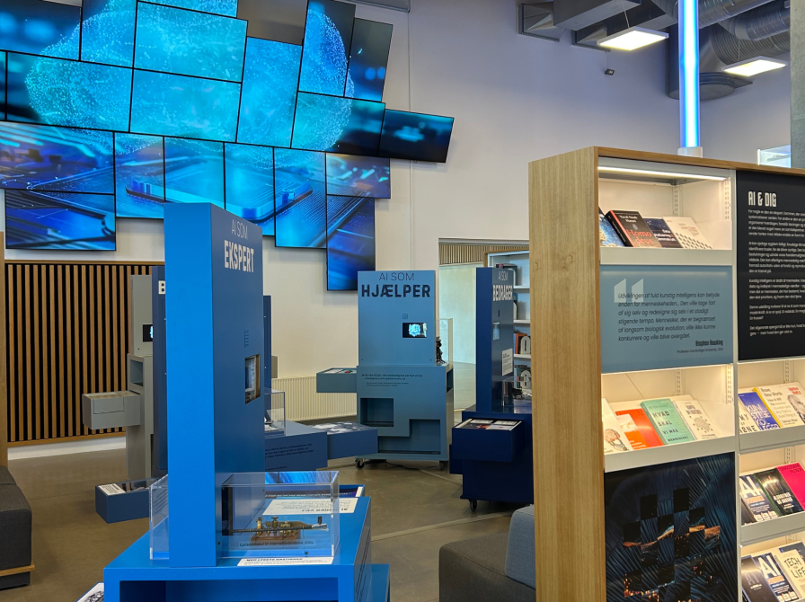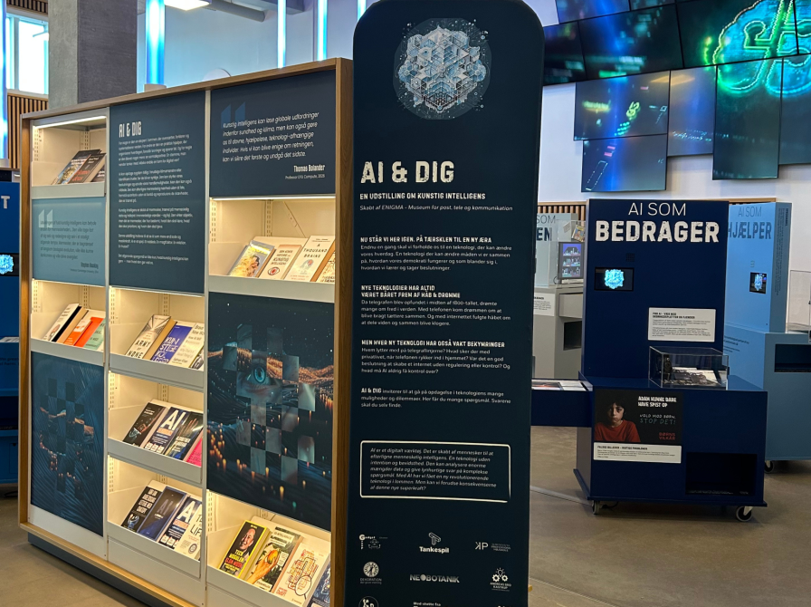 Enigmas udstilling AI & DIG om kunstig intelligens kan opleves på Biblioteket Sønderborg frem til midt april. Og i EXPO Lounge kan du logge ind i et univers, hvor du bliver klædt på til at forholde dig til alt fra kunstig intelligens grundlæggende mekanismer til de etiske spørgsmål der følger med.